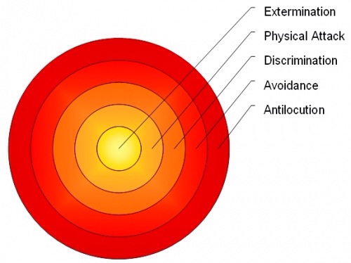 Allport en su conocida «escala del prejuicio» afirmó que el origen del mismo, el primer escalón es «hablar mal» del otro (maldecir). A partir de ahí los pasos siguientes son: evitar el contacto, marginar, violencia y exterminio.