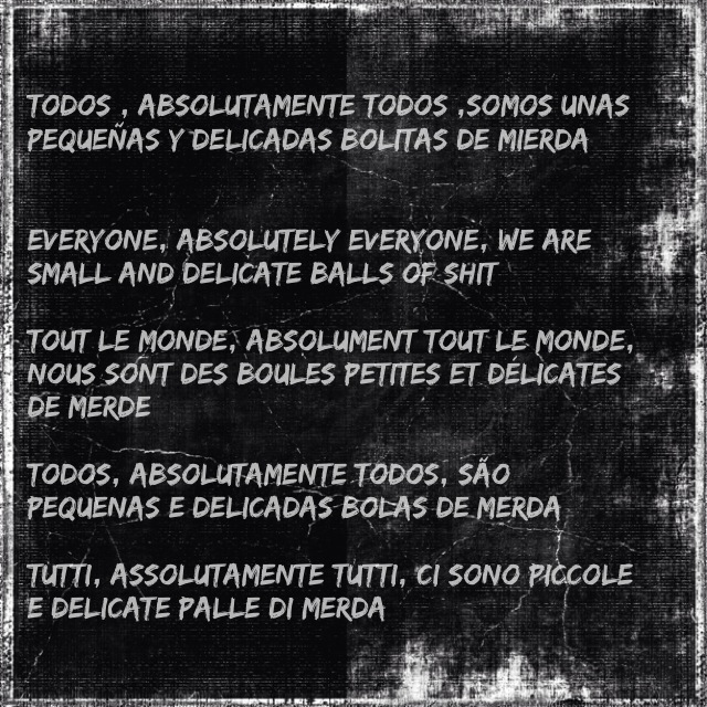 Al tener conciencia de que somos una pequeñas y delicadas bolitas de mierda podemos operar mejor ante los demás y sobre todo ante nosotros mismos .