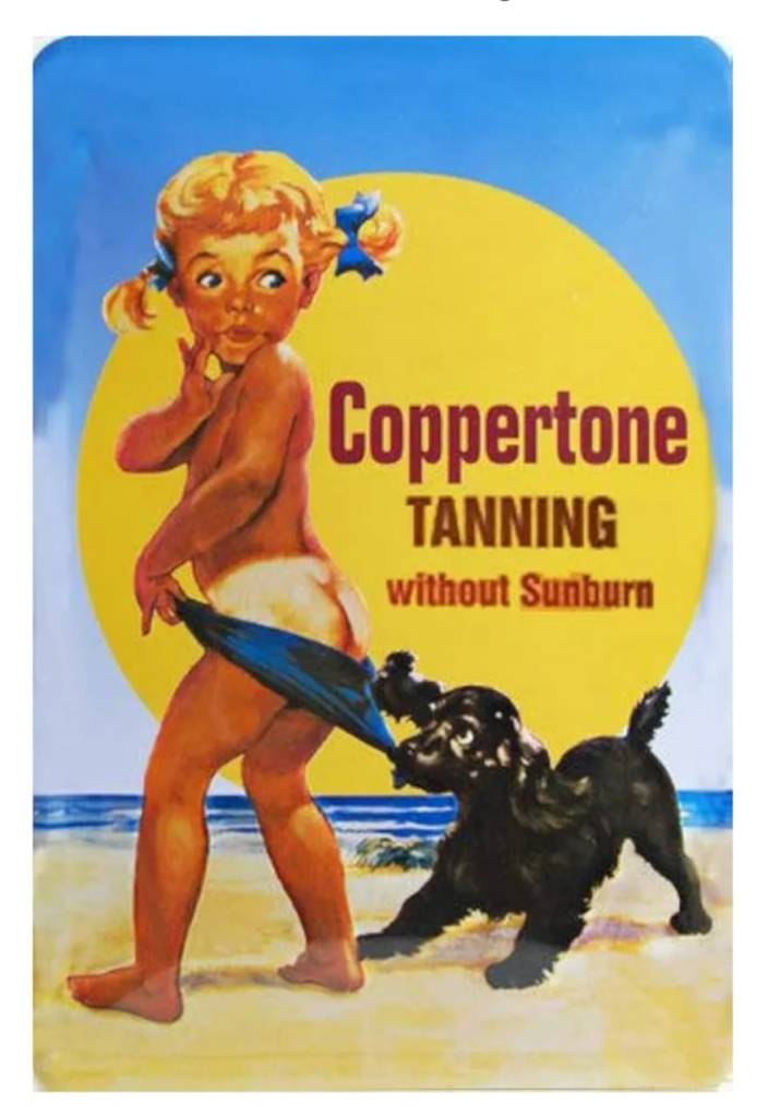 NOTA : Adicionalmente ,las principales organizaciones de dermatología, como la Asociación Americana de Dermatología, enfatizan la importancia de usar protectores solares con FPS 30 o más y evitar por completo el bronceado, ya que puede aumentar el riesgo de cáncer de piel y envejecimiento prematuro, lo que contrasta fuertemente con la imagen celebratoria del bronceado en el anuncio original de Coppertone.